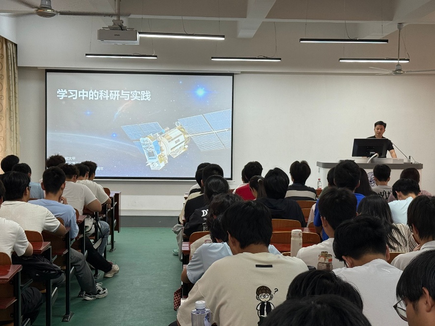 何大平教授以“学习中的科研与实践”为主题,结合当下社会发展需求与科研成果转化实例,阐述了科学研究在推动社会进步、服务人类生活等方面的重要意义。他还强调,作为青年学子,只有保持经久不衰的好奇心,不屈的韧性和坚定的意志,良好的团队合作精神,才能再勇攀科学高峰的旅途中逐渐蜕变,直至独当一面,承担科研重任。