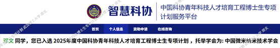 【科研动态】学院邓文博士入选2025年中国科协青年科技人才培育工程博士生专项计划