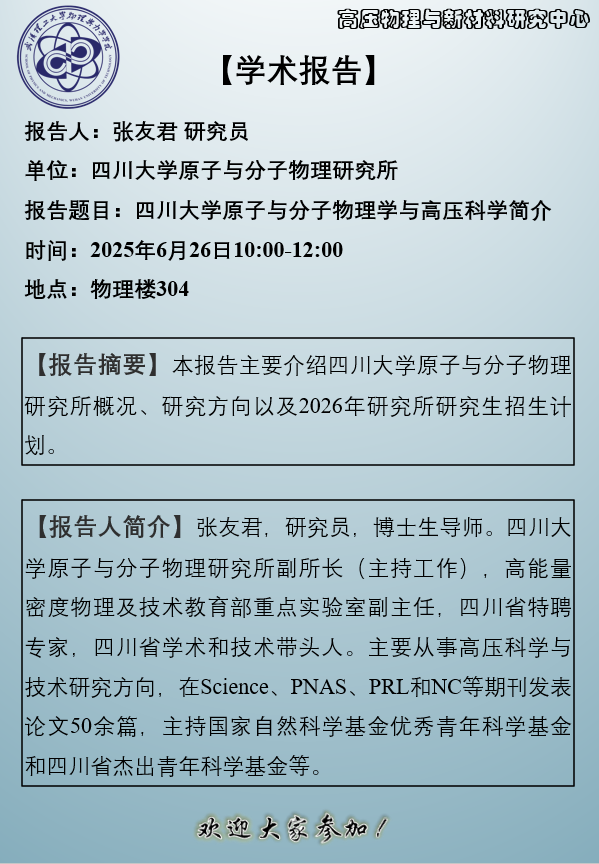 【金沙集团 】四川大学原子与分子物理学与高压科学简介
