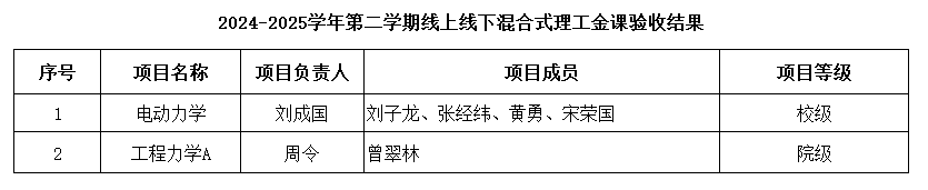2024-2025学年第二学期线上线下混合式理工金课验收结果