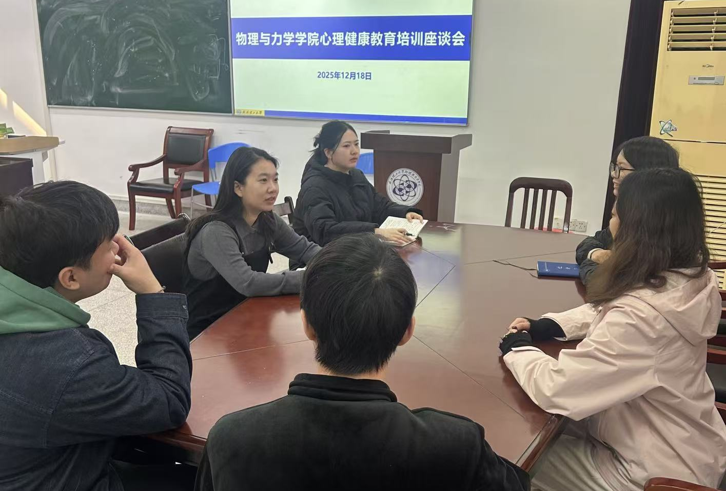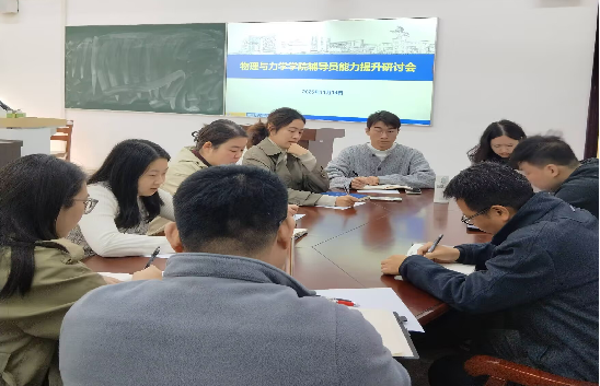 【服务助航】与心灵对话,为教育赋能——金沙集团 心理健康教育培训座谈会圆满结束 发布时间:2025-12-18 近日,物理与力学学院在理苑楼316开展心理健康教育讲座培训交流会,学院党委副书记张明,教学办副主任韩雯欣、全体辅导员及部分班导师参加本次会议。本次会议围绕重点工作案例进行讨论和研究分析,并展望了面向下半年的班主任工作定位与“五个一”的工作要求,鼓励全体班主任老师不断提升履职能力,共同促进学生健康成长和学院育人工作的高质量发展。 编辑:张玗 审核:张明
