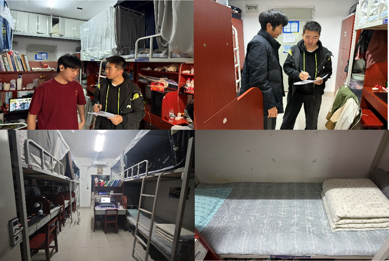 发布时间:2025-12-18为持续夯实学生宿舍安全管理基础,落实校园安全常态化建设要求,金沙集团 将查寝工作纳入日常管理重点,以“全覆盖、无死角、重实效”为原则,常态化开展宿舍安全与文明建设检查工作,全力为学生营造安全、整洁、和谐的住宿环境。