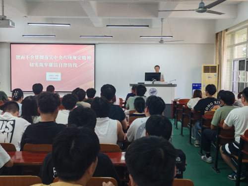会上,余峰书记以《锲而不舍贯彻落实中央八项规定精神,切实筑牢廉洁自律防线》为主题讲授专题党课。他梳理了违反中央八项规定精神问题的类型,从每个类型的表现形式、有关规定、释义及案例进行解读,要求全体毕业生党员知规守矩不逾矩,切实提升党性修养,敢作为善作为。